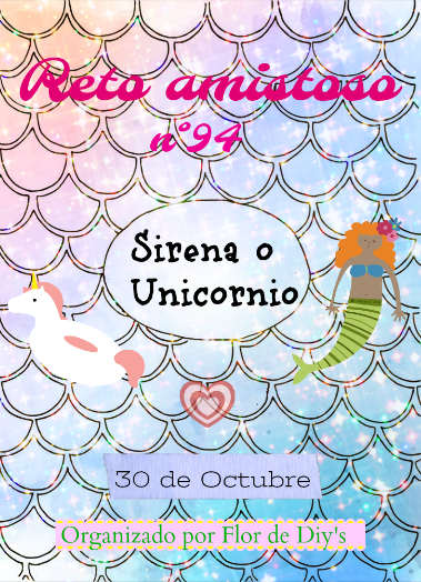 Cuando terminé nuestra compi Esther de Flor de Diy`s aceptó organizar el Reto Amistoso nº 94 y el tema que escogió fue Unicornios y Sirenas, y pensé ¡¡Perfecto!! mi Unicornio se va para el reto.