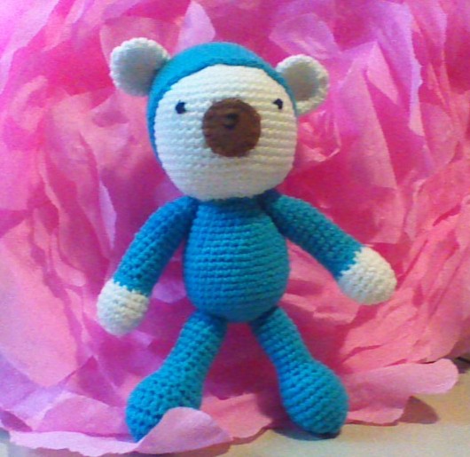 Mirando revistas encontré los AMIGURUMIS. Es una técnica de origen japonés que consiste en tejer pequeños muñecos de croché, y como por casa tenemos niños pequeños , me animé hacer este simpático osito. En principio me pareció un poco complicado pero a medida que lo vas haciendo y comprendes un poco la técnica puedes hacer cualquiera de ellos. Animo.