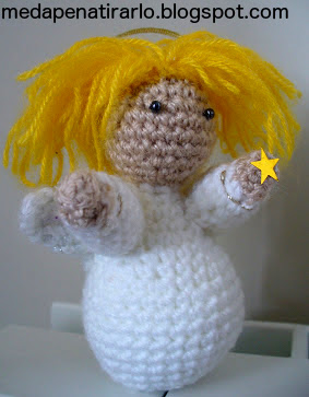 Las pupilas son cuentas blancas pintadas con spray, antes de que me diera la afición por pintar con laca de uñas. En un par de tardes bien aprovechadas la verdad es que tienes un muñeco resultón.
