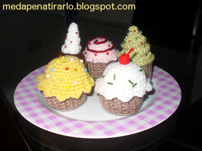 Hay gente que aprovecha estos cupcakes para alfileteros, y la verdad que el de la cereza queda muy aparente. Yo es que no sé qué pinta un cupcake como alfiletero, más bien creo que se puede aprovechar cualquier otro animalito (empezando por un erizo) para dedicarlo a ese uso...