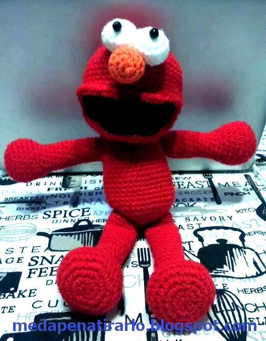 Como al maromo le gusta mucho Elmo le hice uno, sin más. Lo más delicado es coserle bien la boca para que no le quede ni muy hacia fuera ni hacia dentro, no me acabó de quedar bien.