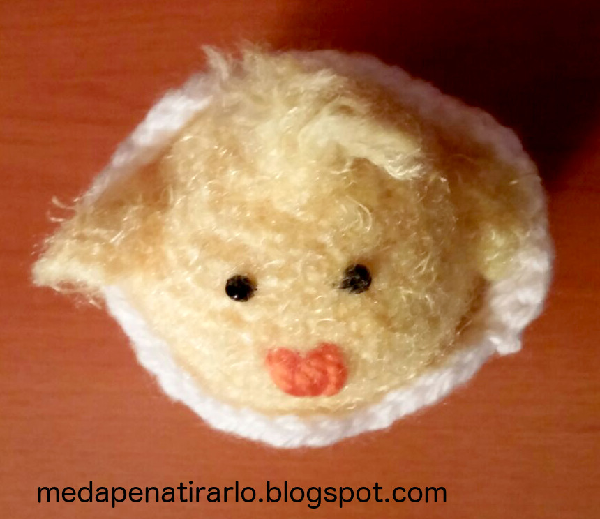 Este oso es un buen ejemplo de obra destinada al regalo o a ser juguete infantil. Es fácil de trabajar y pese a su tamaño tampoco se tarda tanto en acabarlo. El patrón está sacado de la inimitable página de Tejiendo Perú, muy recomendable para principiantes por la claridad de las indicaciones y tutoriales. Yo no lo hice para San Valentín así que ahorré los corazones, y reciclé un lazo sacado de no sé dónde para que no quedara tan soso. Seguramente lo repota si tengo que regalarle uno a alguien. Con muñecos de este tamaño es factible utilizar una cápsula de plástico de las que vienen en los estuches de tinte casero para el pelo o huevo Kinder, rellena de semillas, arroz o piedrecitas, para hacer del muñeco un sonajero. Simplemente se mete la cápsula y se envuelve de napa, hay espacio para todo.