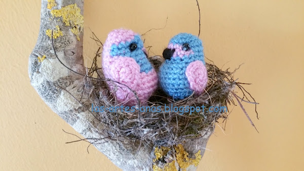 Estos pajaritos llamados agapornis los he hecho en el grupo FAMILYCROCH , SI QUERÉIS HACERLOS pinchad AQUÍ, QUEDAN DE LUJO. los he hecho para un regalo