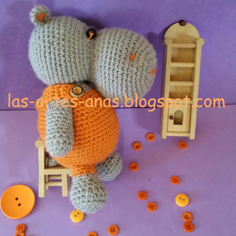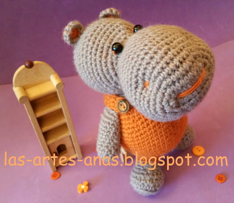 Y TERMINO con el HIPOPOTAMO , está tejido en lana , y aguja del tres , RECUERDA QUE PARA TUS AMIGURUMIS debes utilizar SIEMPRE una aguja más pequeña que la recomendada para el hilo, YA QUE EL TEJIDO DEBE QUEDÁR APRETADITO PARA QUE NO SE VEA EL RELLENO, es lo más importante para mi