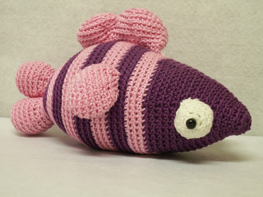 El pez quedo muy gracioso, al combinar en rosa y morado... No me apetecía que quedase tipo Nemo, que es el típico.
