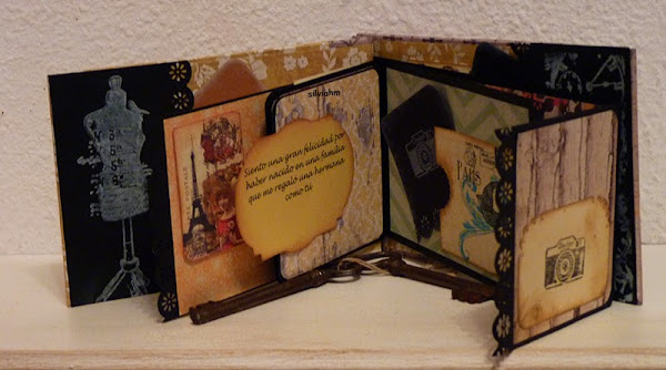 Aquí estoy con unos nuevos trabajos de scrap. Se trata de tres álbumes que se han ido a Santander. Allí, unos novios se los regalarán a sus hermanas en el día de su boda. Están personalizados con frases dirigidas a ellas y entran un montón de fotos donde colocarán fotos de ellas de pequeñas....Un detalle pensado al detalle por ellos y que creo logrará emocionar a sus hermanas. A ellos les han gustado mucho, ya me contarán cuando se los den.