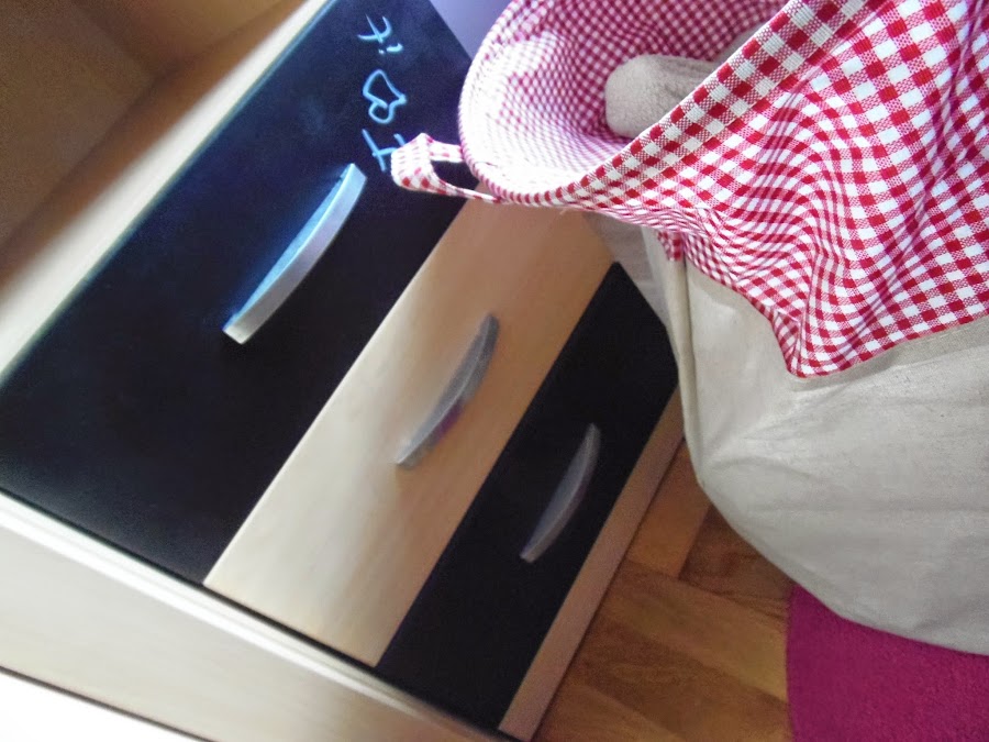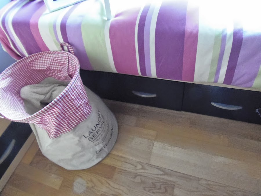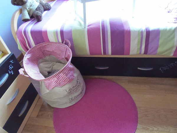 Y por último,una bolsa para la ropa sucia,qué no lleva pintura de pizarra pero cómo me gusta mucho cómo queda os lo enseño jaja!!