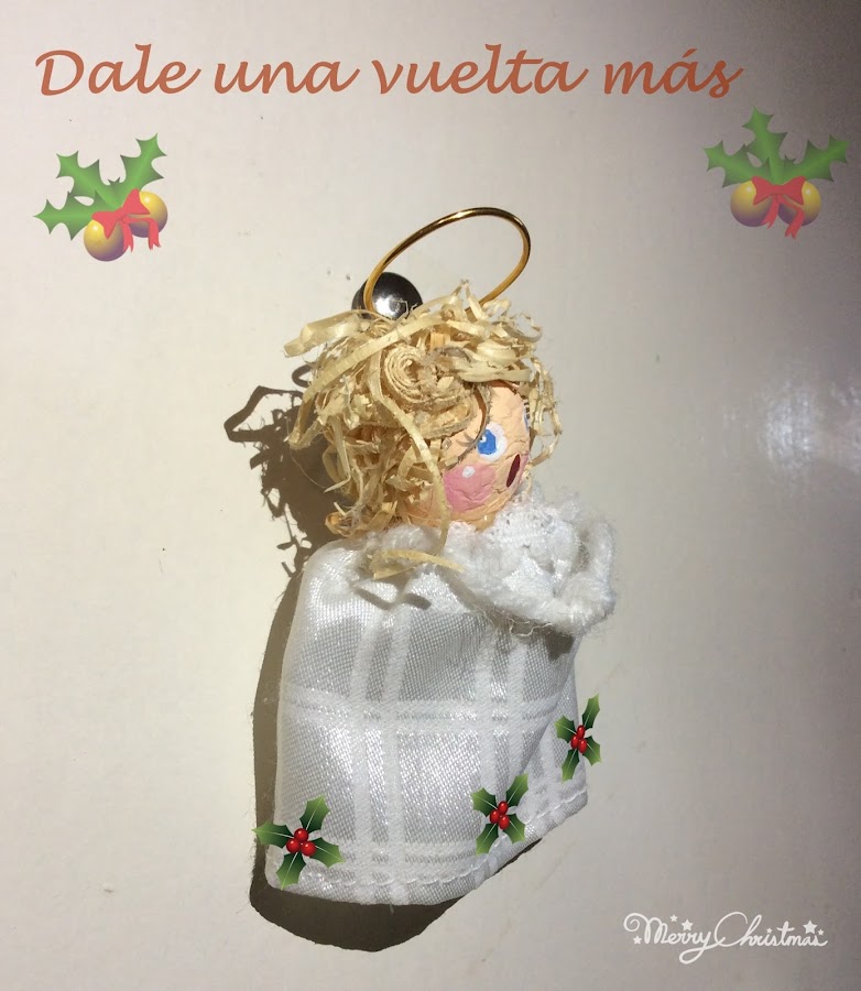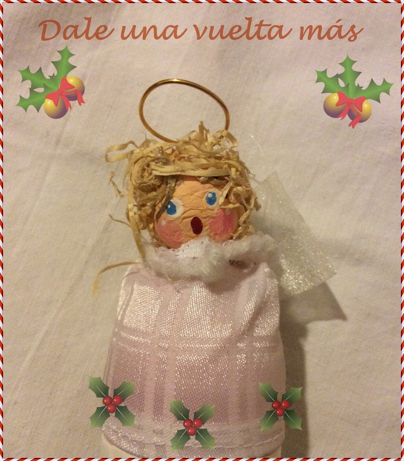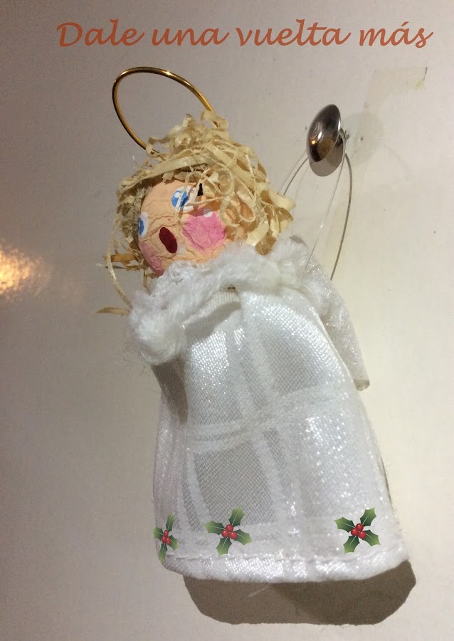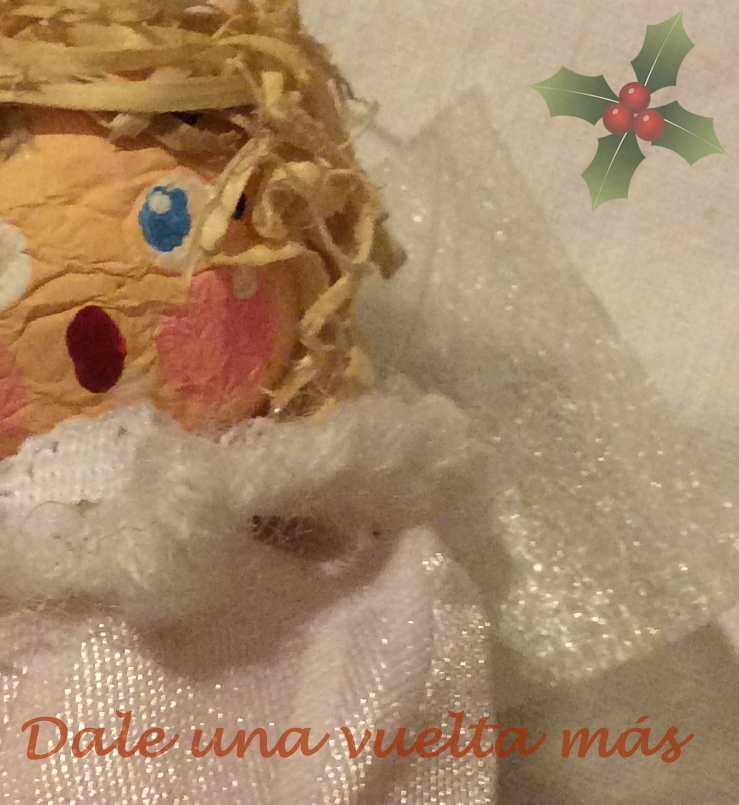 Y por último hay que unir la cabeza al cuerpito y listo, tenés tu angelito navideño.
