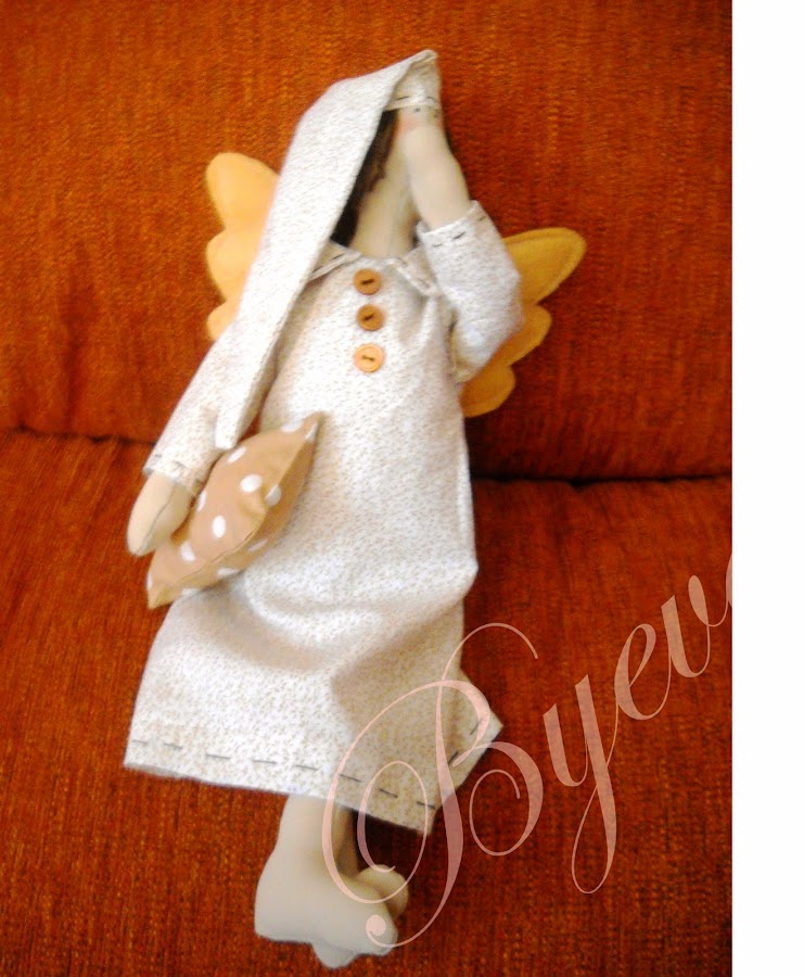 Os traigo un muñeco que terminé hoy.......el Ángel Dormilón de Tilda. Como tantas otros cosas cuando lo vi me encantó y he ido cogiendo soltura con la costura (anda me ha salido una rima :D), hasta que me he atrevido a hacerlo.
