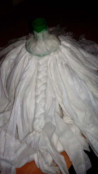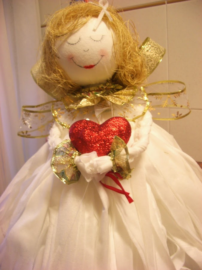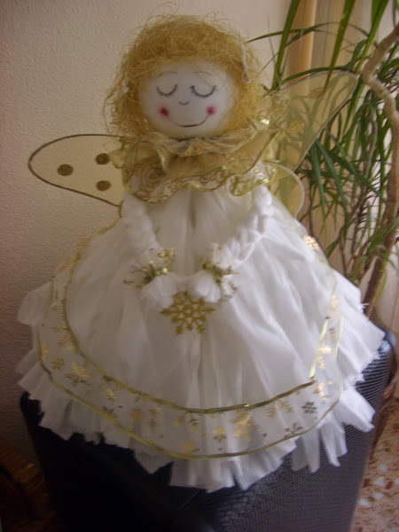 Bueno con el fresquito ya empiezo a pensar en los adornos de navidad y os enseño los ángeles de mochos, que llevo haciendo cuatro navidades y aun no tengo el mio, ya se sabe " en casa de herrero cuchillo de ..."