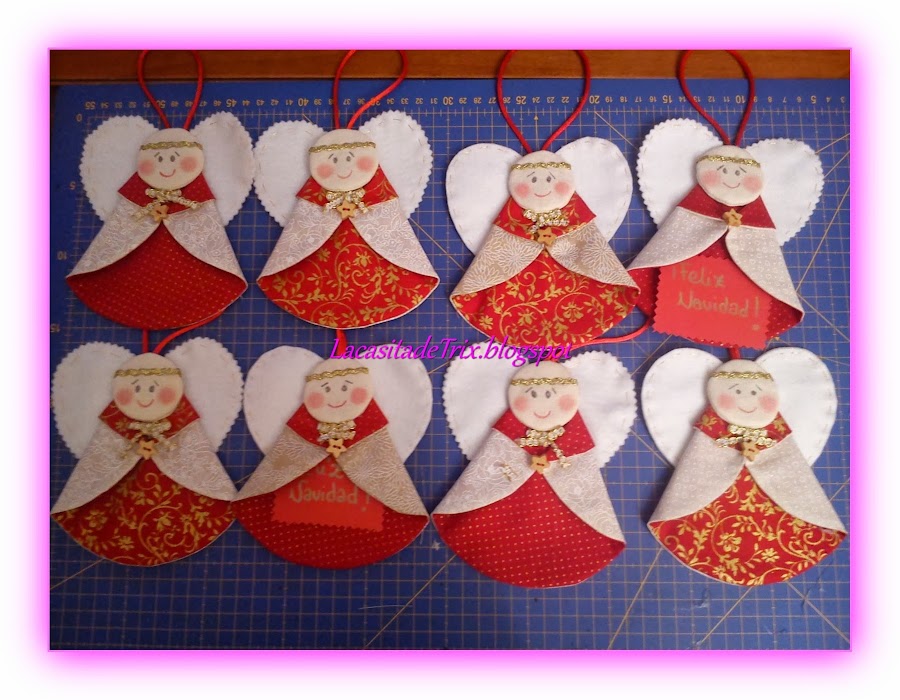 Estos angelitos me encantan, el año pasado ya los hice, pero los de este año son mas pequeños todavía y quedan monísimos. Esta parejita ya va de viaje rumbo a Polonia, para dos familias que viven allí ...