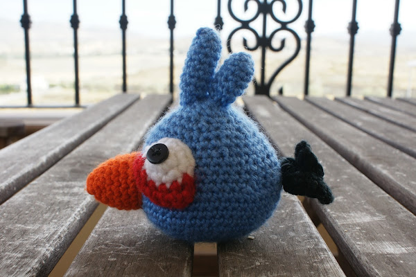 Hoy rapidito de verdad de la buena, para mostraros a mi pequeño Angry Bird azul. Uno de esos (no precisamente simpáticos ;) ) personajillos que me ha acompañaron en numerosas esperas: del autobús, del médico, entrevistas... Y que igualmente acompañaba a mi Jesusillo en ratos tontos de aburrimiento. Es por eso que, hace ya... tres? cuatro años?, para acompañar a su regalo de cumpleaños, me pareció una buena idea hacerle uno ;) ya que le había encantado el primer amigurumi que había hecho (el cerdito rosa ;) ) y como aún no tenía mucha experiencia, este me parecía un trabajo sencillito.