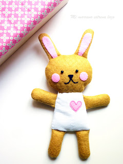 Por ahora veréis que hay una conejita y una mapache, pero por supuesto que vendrán más, solo tenéis que pedirlo, ositos, perros, gatos........lo que se os ocurra, y que tienen de especial estos Anilitos? pues que te querrán un montón con ese corazón que tienen bordados en sus cuerpecitos y además podrás cambiarles de ropa, siii!!!!!! jejeje, ahora vereis solo dos modelos, que son los que he hecho para la presentación, pero tendrán mas ropa y complementos intercambiables : D Me encanta!!!!! jejejeje, así nuestros amigos no tendrán siempre el mismo aspecto. Bueno, pues paso a presentaros a dos de estos amigos: la conejita y la mapache: