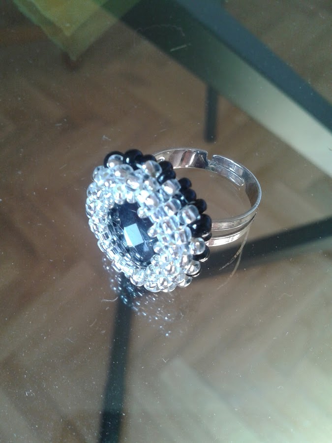 Este anillo a juego con el broche Vintage, realizado con los mismos materiales delicas y granito.
