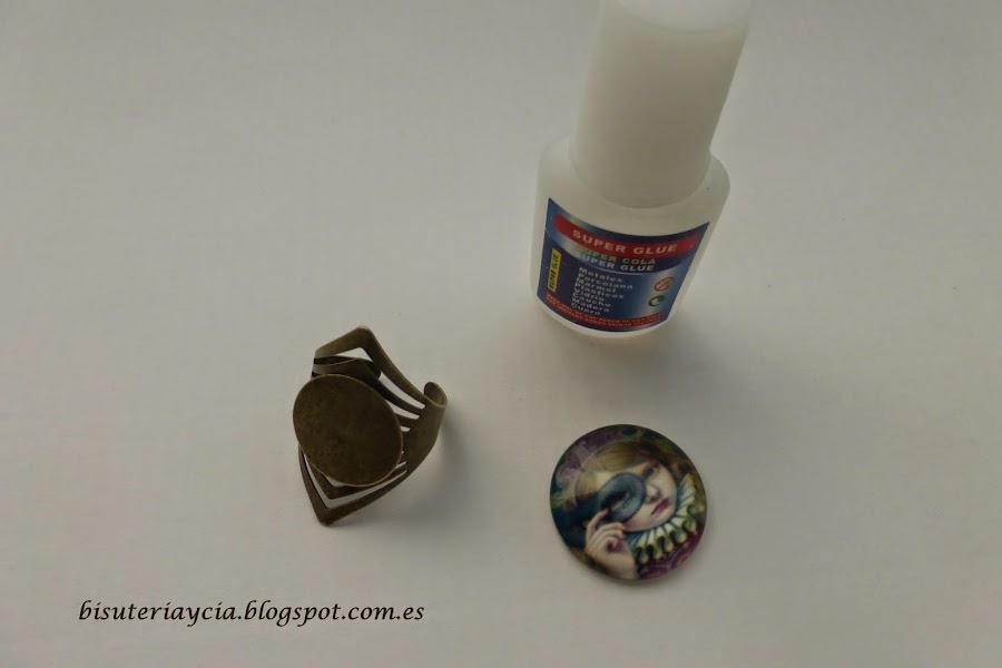 La cosa es muy sencilla solo tenemos que aplicar pegamento a la base del anillo, colocar el cabuchón y esperar que seque.
