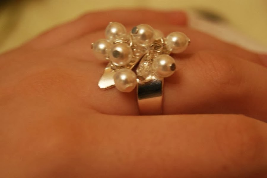 Os tengo abandonadas, con esto del nuevo curro estoy liadilla y ya terminé el mega pedido de Santa Quiteria, uf uf! Os presento este anillo, estaba a burridillla y me puse, me puse y salió esto, y la verdad, ami me encanta el resultado! Y a ustedes? Se puede encargar en más colores, por supuesto! Anillo de perlas en tonos azules nacarados diferentes tamaños y tonos de azul. Base de plata aju ...