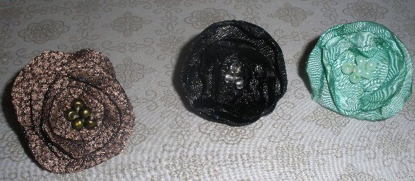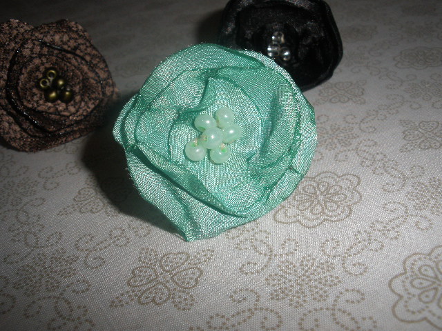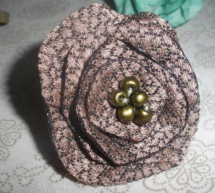 Esta vez hice una prueba, la tela marrón no es el tipo de tejido que se usa para estas flores, pero me gustaba un anillo así y lo intenté.