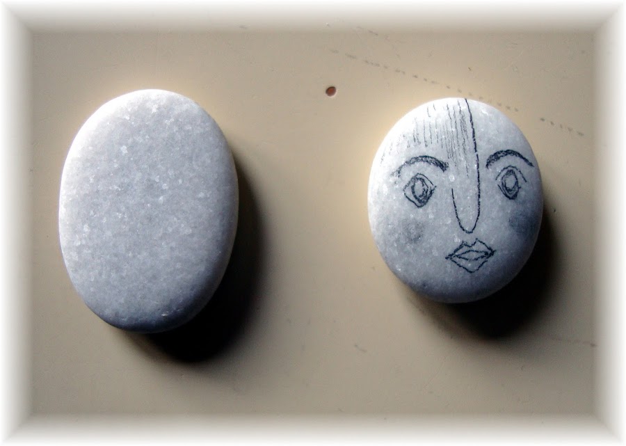 Bajo la piedra con el rostro pintado, pegué una pieza de fieltro marrón con bordes irregulares, como un sol trasnochado.