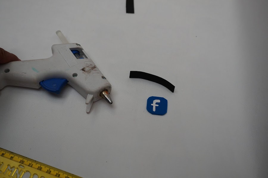 Ahora únicamente vamos a pegar con silicón caliente nuestro rectángulo al cuadrado de nuestra red social.