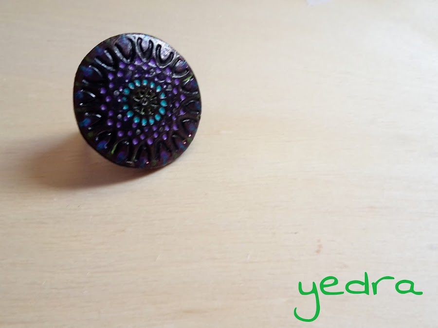 Un anillo muy llamativo pintado con rotuladores.