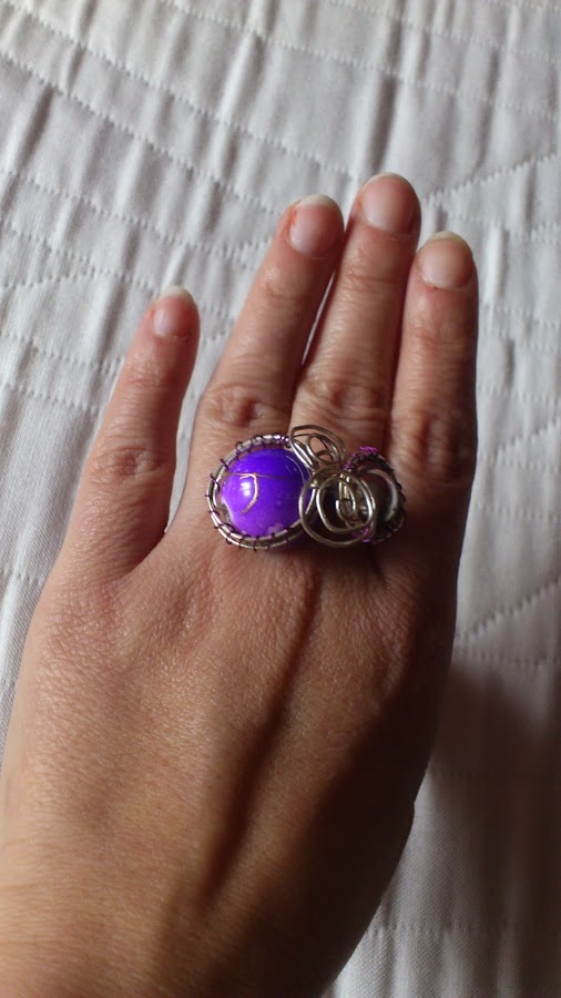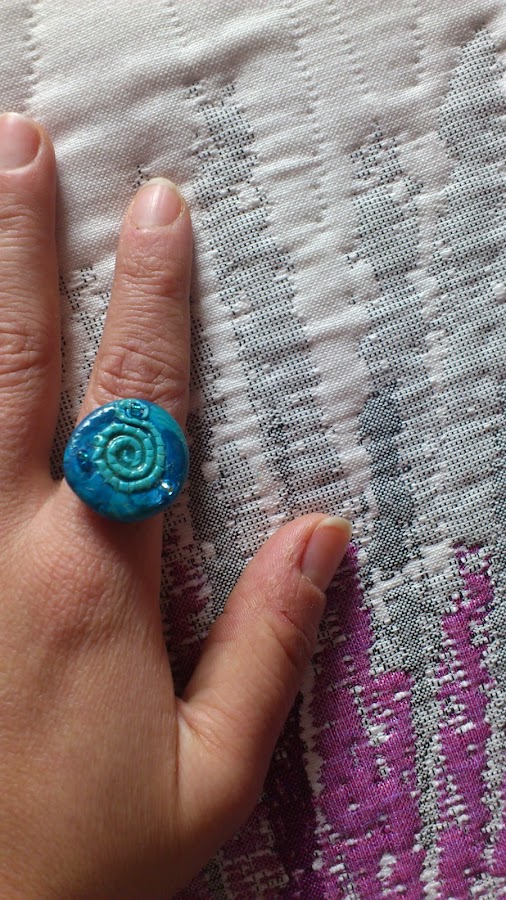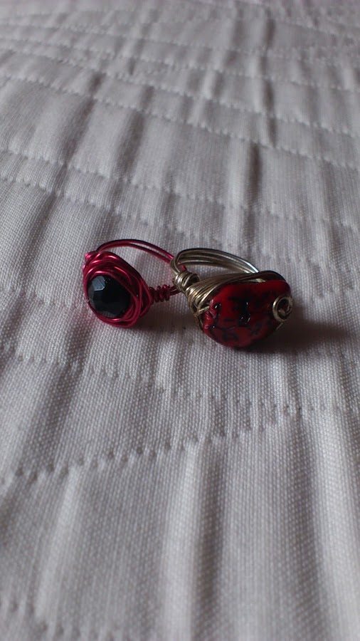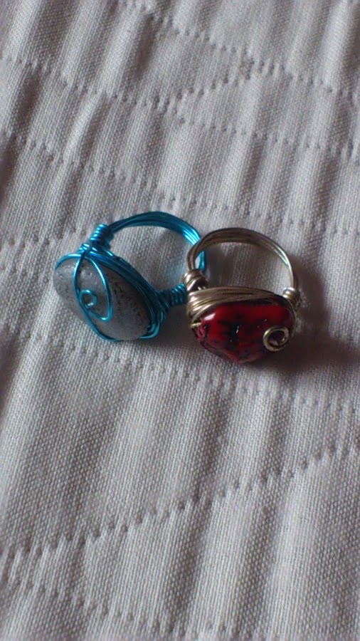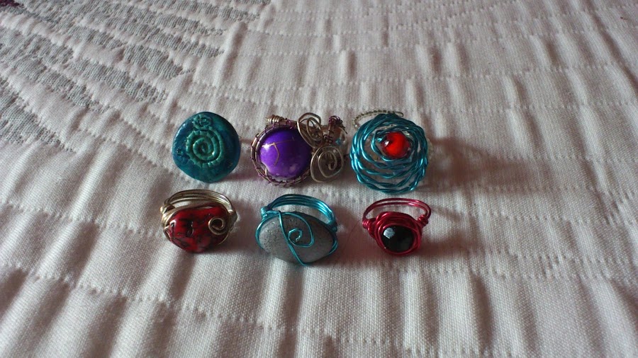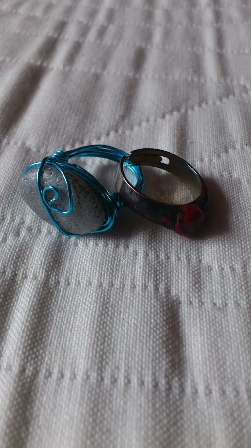 Os quiero enseñar estos anillos los hice hace ya algún tiempo, fueron de mis primeras creaciones son de alambre, y el azúl redondo es de porcelana fría.