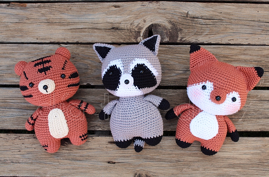 En esta ocasión le toca el turno a tres animalillos un poco menos domésticosque los que os he enseñado hasta ahora. Si hasta ahora os había enseñado gatos, conejos y cerditos, esta vez se asomarán por aquí un mapache, un tigre y un zorro.