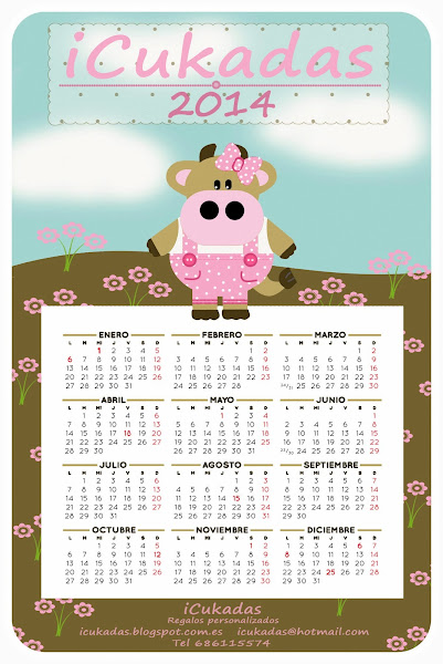 Para este nuevo año también he diseñado un calendario, al estilo iCukadas eso si, y personalizable. Los que me seguís por Facebook ya sabéis que os regalé el calendario con vuestro nombre, y a los que no, pues en la barra lateral tenéis el correo para pedirlo, sólo tenéis que dejar un comentario en este post y enviarme un correo con el nombre que queréis que le ponga.