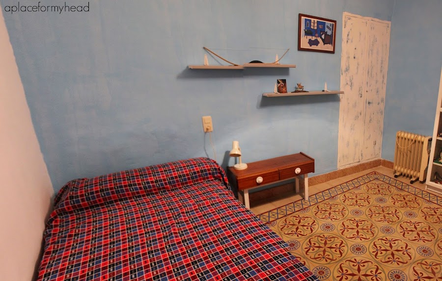 Lijamos paredes, tapamos grietas y desperfectos. Dos paredes las pintamos azules y las otras dos blancas. En el armario empotrado se me ocurrió hacer un experimento...