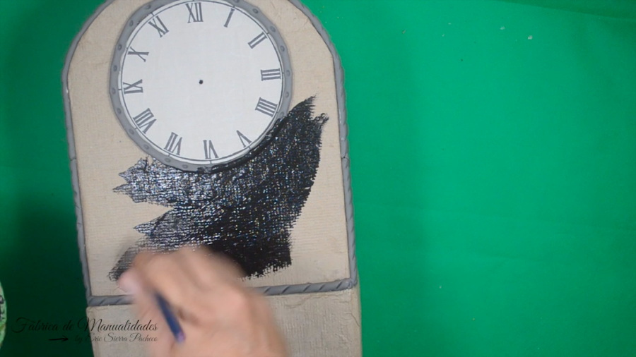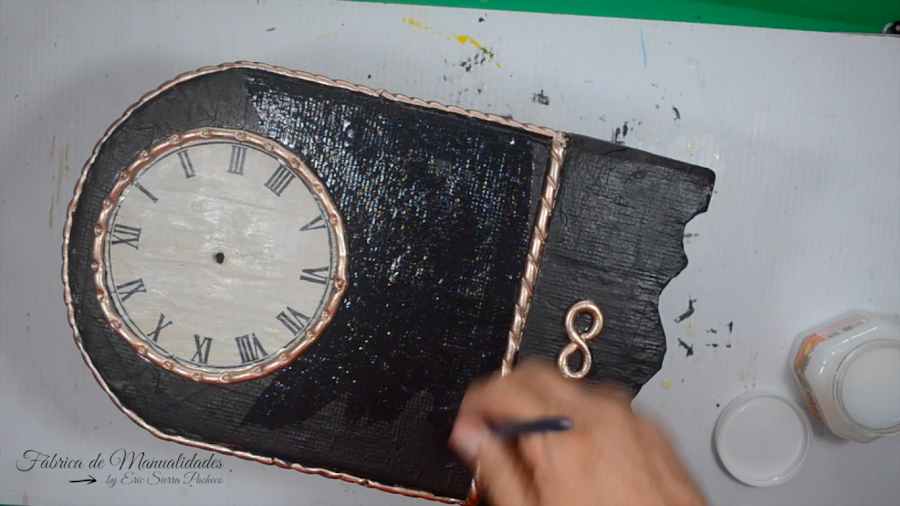 21. Pintamos el reloj en el color de nuestro gusto, menos la parte de la carátula. Yo usé un marrón muy oscuro.