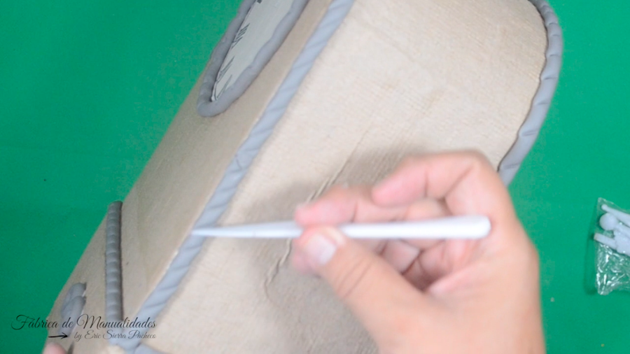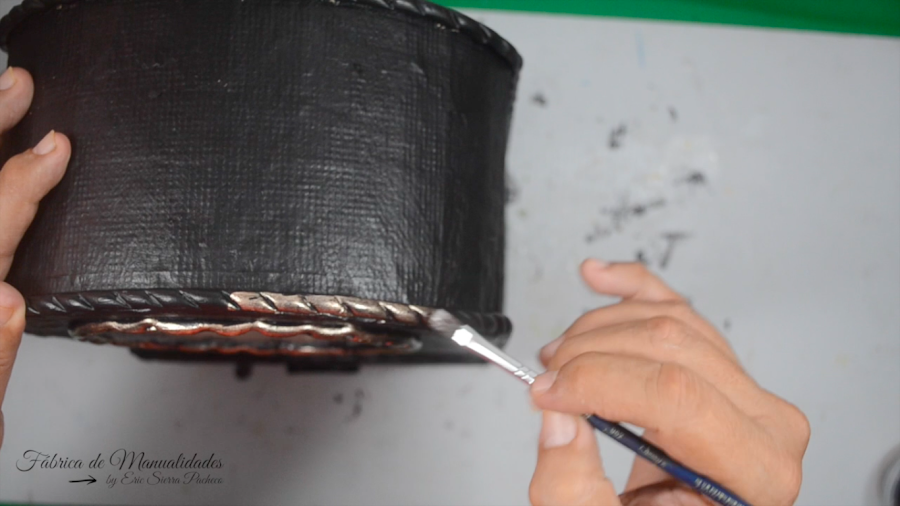 23. Pintamos en un color metálico, dorado o cobre, todos los cordones de porcelana fría que pegamos.