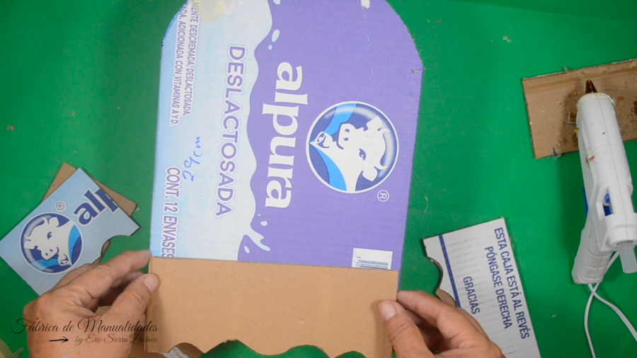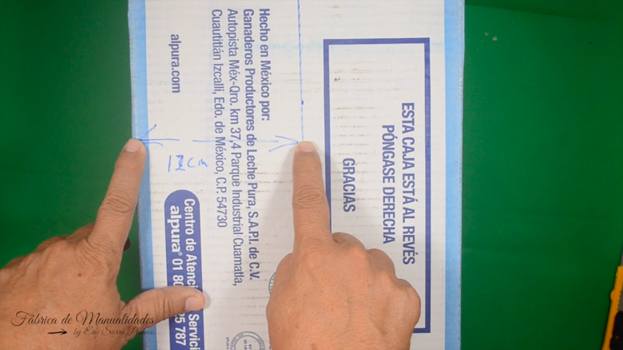 1. Necesitamos una caja pequeña, yo estoy usando una donde viene la leche de litro. Esta mide 20.5 cm de ancho por 29 cm de alto.