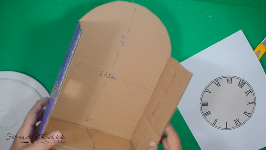 4. Con algún plato o algo circular trazamos, tal y como muestro, para recortar, es el lugar donde irá la carátula del reloj, previamente impreso.