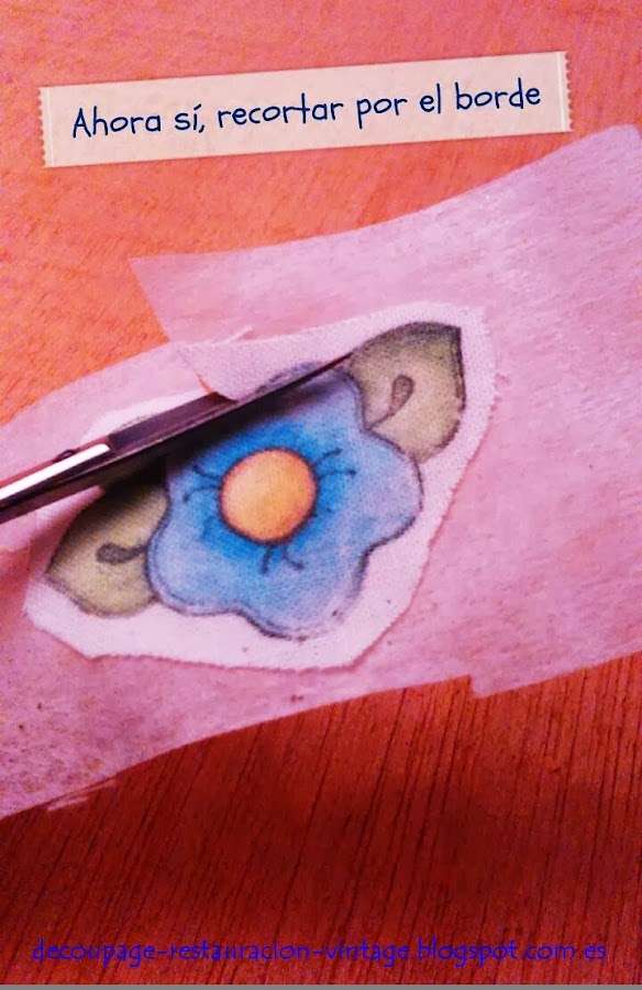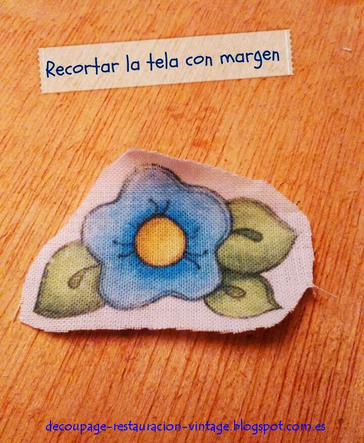 Una vez transferida la imagen, recortamos alrededor de la imagen, pero dejando un margen, luego ya recortaremos bien por el borde para que no se deshilache.