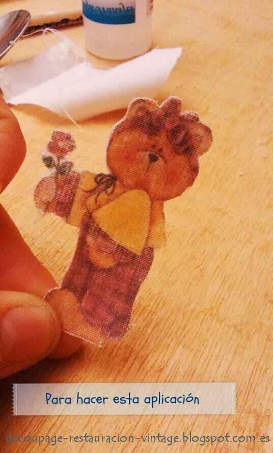 Ponemos medium textil en la cara de la fliselina que no tiene el pegamento y ponemos la imagen del transfer.