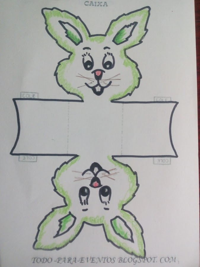 Jen del blog Little Kimono nos propuso el Reto Handmade del mes de Abril con el tema Pascua y como para esta época del año lo más apropiado son las "Monas de Pascua" que aquí en Aragón también son muy populares, tanto las de chocolate con sus figuritas como las de pan con huevo duro para la merienda. Como no sé hacer esas monas de pan me conformo con comprar un huevo de chocolate y en hacerles un soporte alusivo para la ocasión. Como se aprecia en la fotografía es una cajita de cartulina con forma de cara de conejo de Pascua. Lo he coloreado con pinturas de madera y repasado los contornos con un rotulador negro.