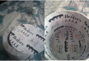 Por último pegaremos, para tapar las dobleces de la base, el círculo de lámina y en el interior el rectángulo para tapar las dobleces del interior, tanto de abajo como de arriba.