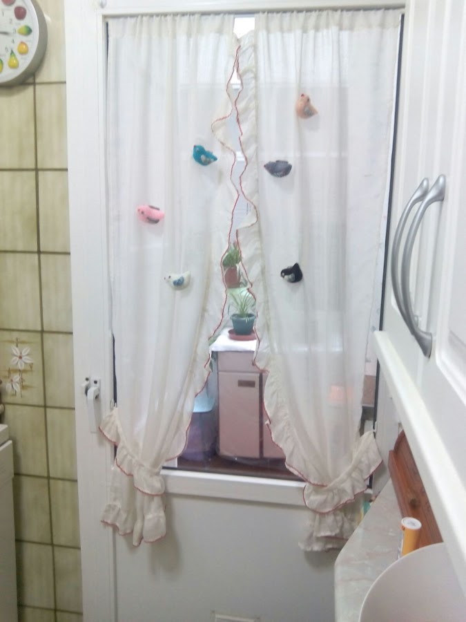 Mirando las cortinas de mi cocina me di cuenta que estaban un poco sosas y recordé que en la revista nº 1 de Telas de Luna había unos pajaritos muy graciosos que podían alegrarlas. Las explicaciones las podéis encontrar en la mencionada revista.