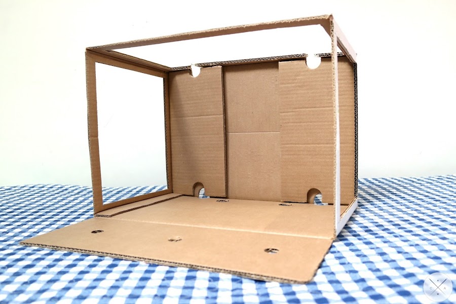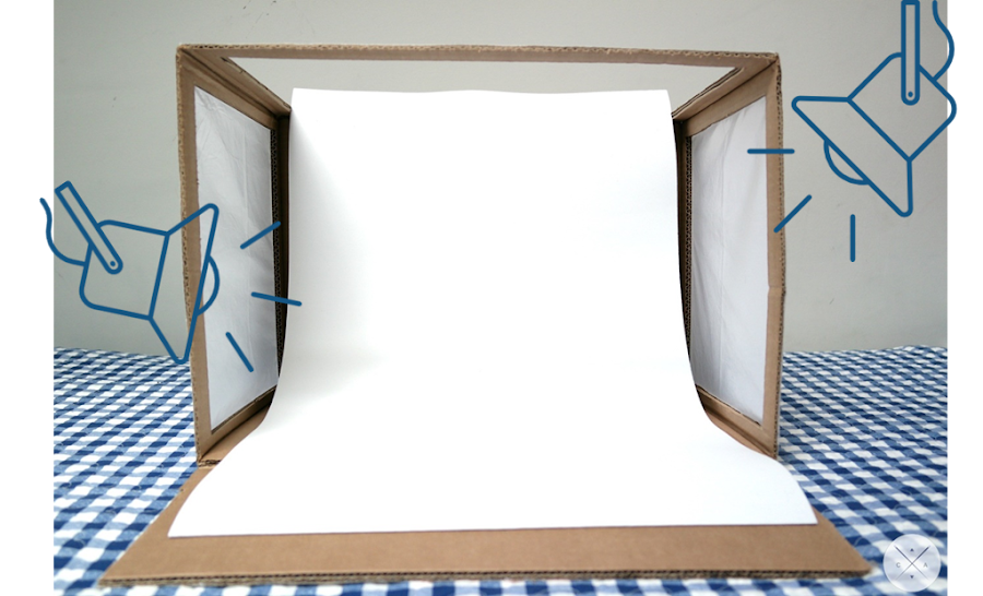 Metemos en el interior un trozo de cartulina blanca (o del color que queráis que sea el fondo de la fotografía) y ya tenemos nuestro mini estudio fotográfico casero casi terminado, ahora sólo queda que jueguen con las luces. Mejor con potencia y las más parecidas a la luz natural.