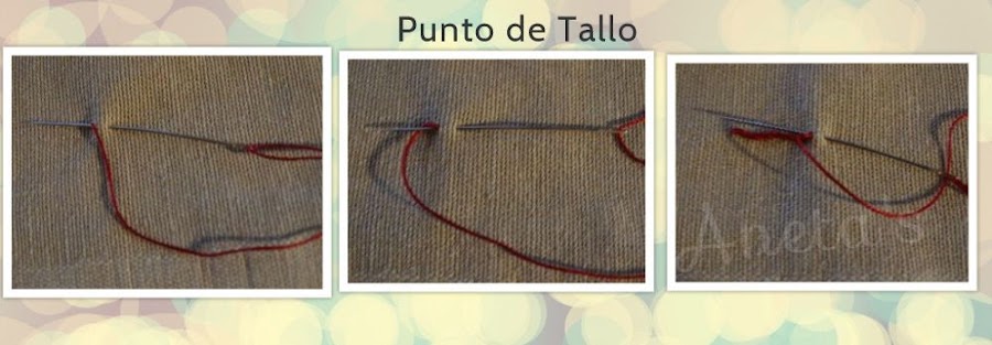 Este punto se usa mucho en el bordado a mano, es ideal, como su nombre indica, para hacer los tallos de las flores y también se utiliza mucho para marcar los contornos, las siluetas de los dibujos elegidos. Para este punto, trabajar la labor de izquierda a derecha.