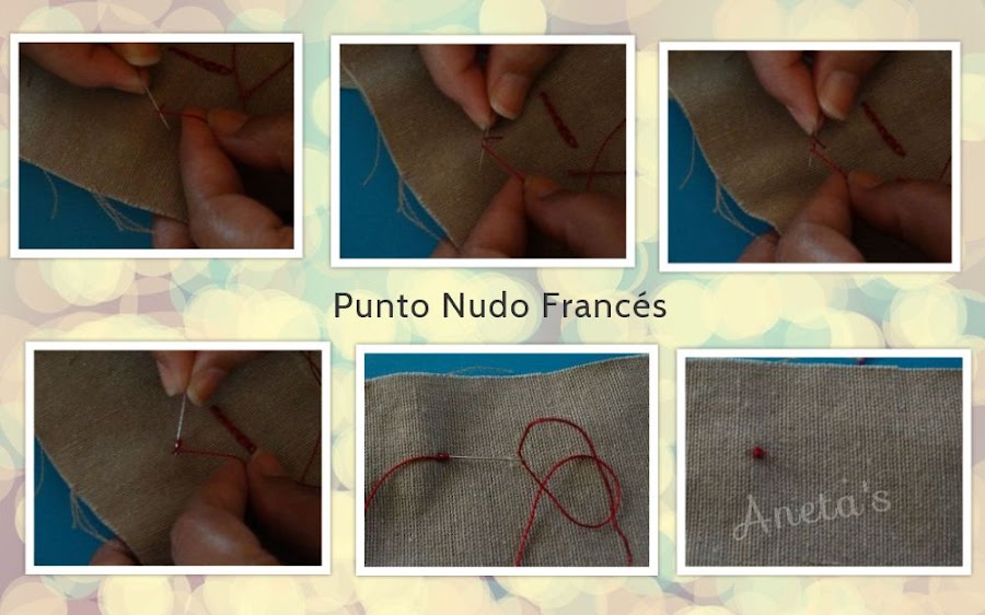 Otro punto al igual que la bastilla y el tallo, que se utiliza para bordar las siluetas de los dibujos. También es ideal para rellenar partes de los dibujos que vamos a bordar. En este caso lo utilizaré para bordar el marco interior..