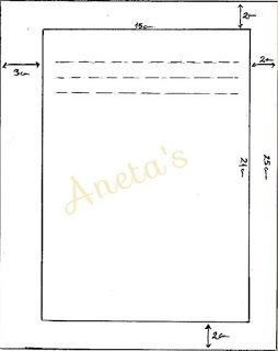 En esta segunda pág hay que tener cuidado porque las medidas son las mismas, pero esta vez es el lado derecho el que mide 3cm, ya que es la parte de atrás de la primera pág, con lo que se formará la primera hoja de nuestro libro.