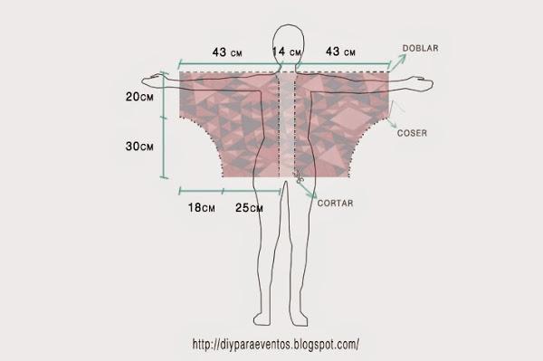 Para las mangas, cortar como muestra el esquema, nuevamente marcando con tiza sobre la tela.