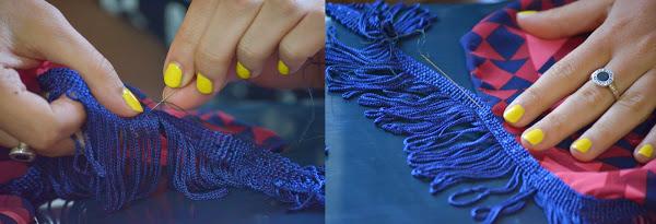 El último detalle que queda por hacer es coser los flecos en todo el perímetro inferior del kimono.