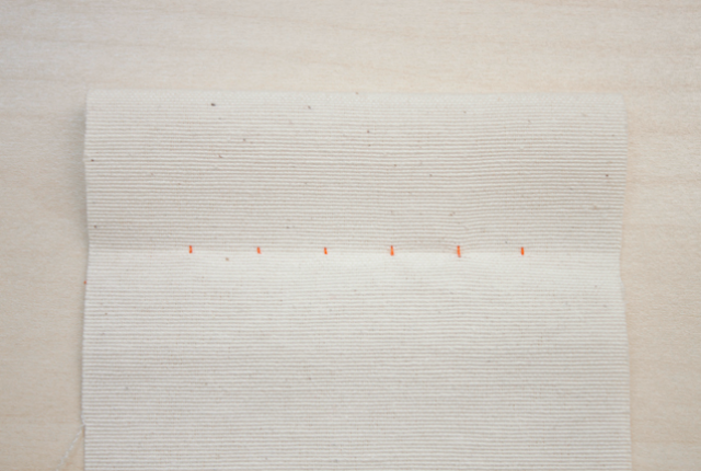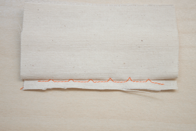 Es similar a la puntada invisible que vimos a mano, se debe hacer el dobladillo por donde queramos y coser dejando que coja tan solo un poco de éste (como se ve en la foto), al estirar la tela quedan simplemente unas pequeñas puntadas en el otro lado. Para esta puntada se usa un color de hilo lo más parecido posible al tono de la tela.