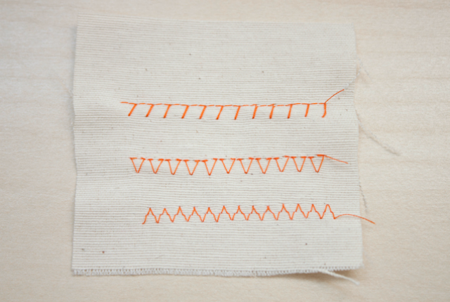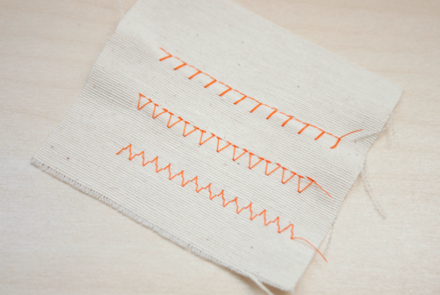 La función de ese tipo de puntadas es la evitar que se deshilache la tela, pero en función del tipo de tela que usemos es más apropiado gastar unas u otras. Empezando desde arriba la primera se usa para telas elásticas, la segunda para telas gruesas y la tercera para telas medianas o más finas, al tener dos puntadas para coser un zigzag evita que se enrollen.