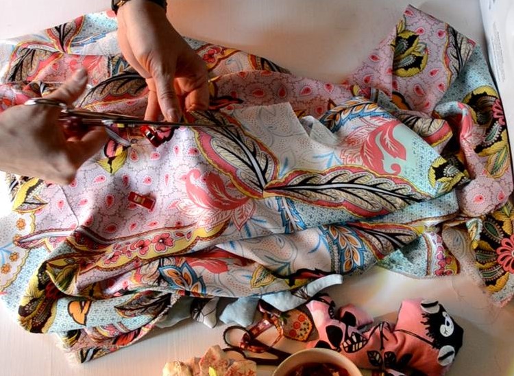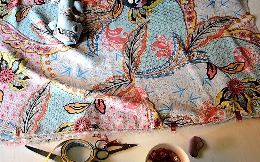 - tela estampada con mucha caída, la mía es una viscosa en tonos azules y rosas.