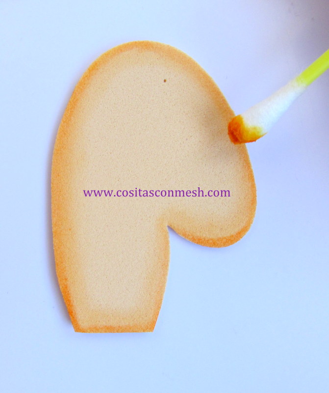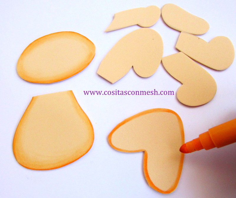 Todo el conejito ira en foami color piel, para decorar el foami, siempre me gusta usar plumones, en este caso usé plumón amarillo y delineo en todo el borde todos los moldes del conejito.