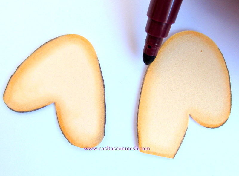 Luego con plumón marrón delineo todo el borde de la oreja.