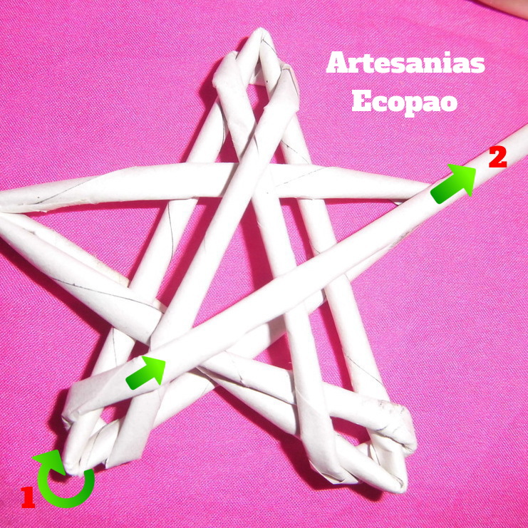 Para hacer la estructura de la estrella; lo primero es formar un triángulo y con el rollito marcado como 2, hacemos el siguiente paso.