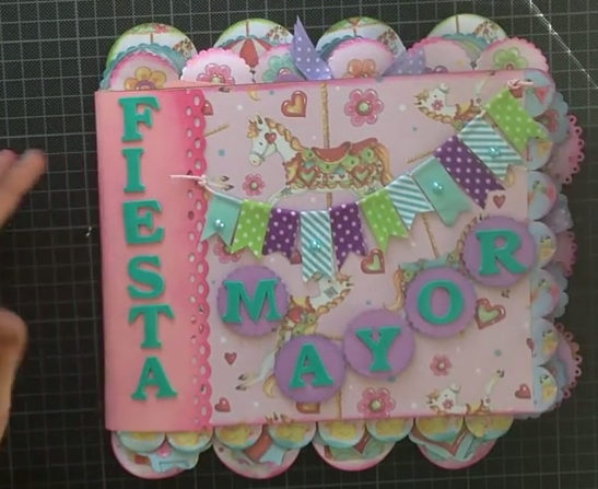 Hoy nos enseña a hacer un bonito mini albúm de temática fiestera con una con una colección de papeles muy colorida y alegre.